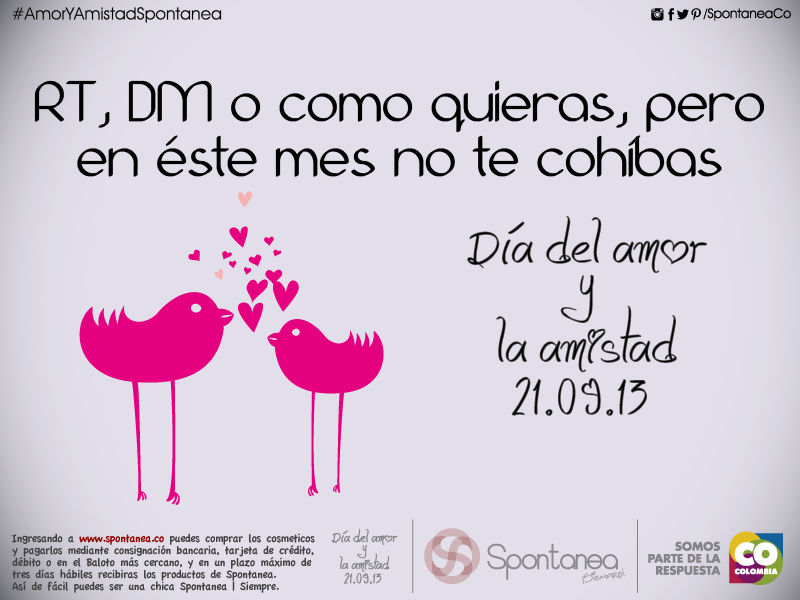 B&B Creative desarrolló la campaña para generar tráfico y ruido en redes sociales de la marca Spontanea bajo el tema de Amor y Amistad, se generarón 50 artes, acá alguno de ellos.