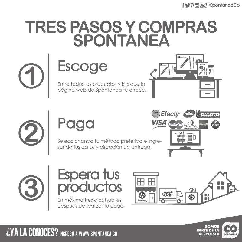 B&B Creative desarrolló un flyer para informar a los clientes de Spontanea los pasos para poder comprar sus productos mediante la página web de la empresa.