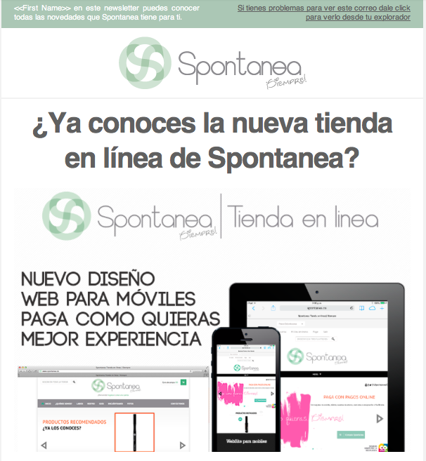 B&B Creative desarrolló una campaña email hecha para Spontanea con el fin de informar sobre su inauguración de su tienda en línea.